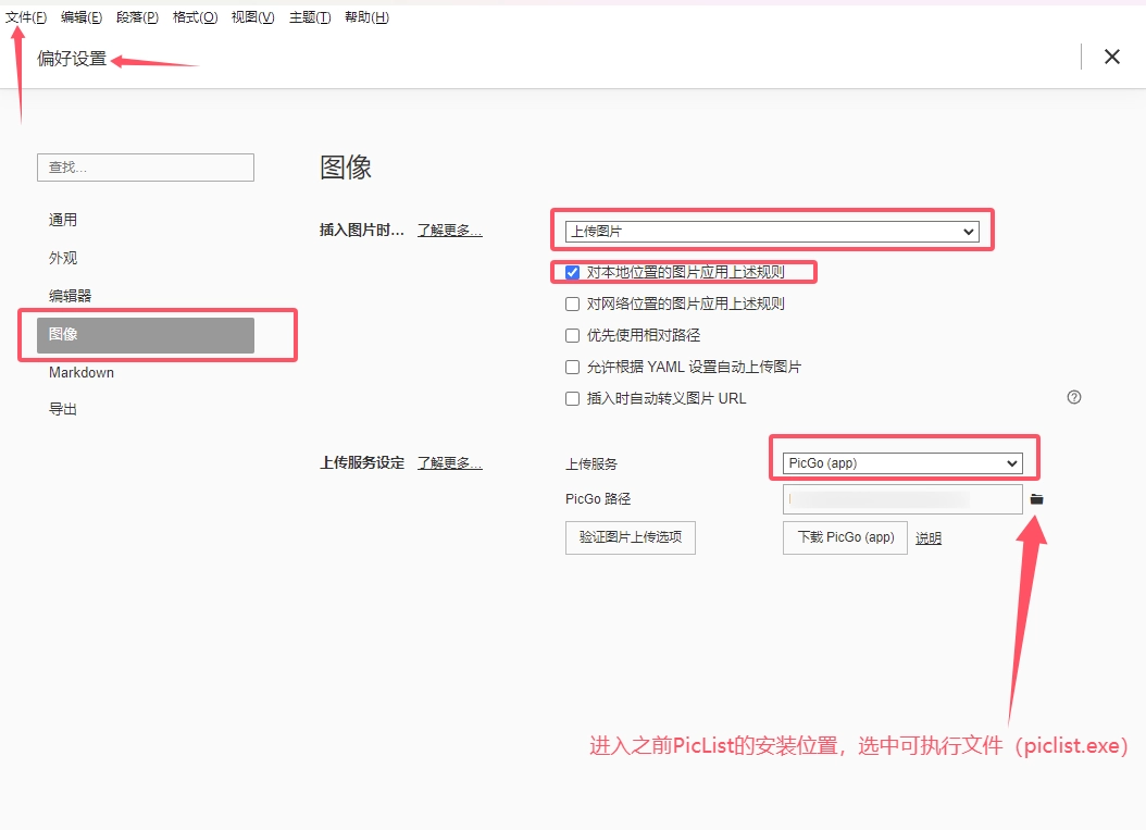打开Typora,依次点击文件-偏好设置,按下图进行设置