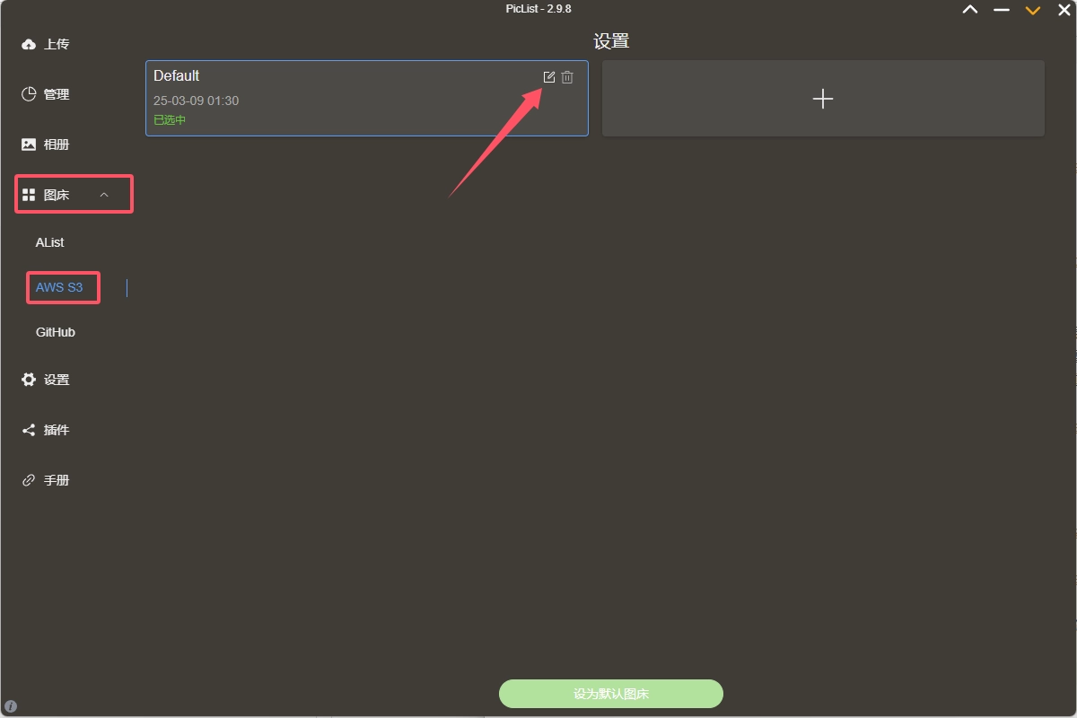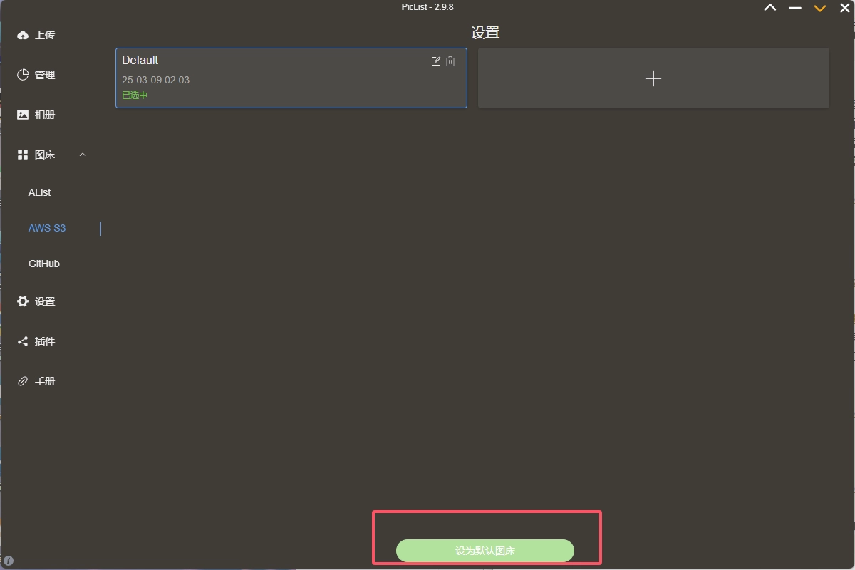 点击确定保存,在返回的界面底部选择设为默认,至此PicList基本设置完毕